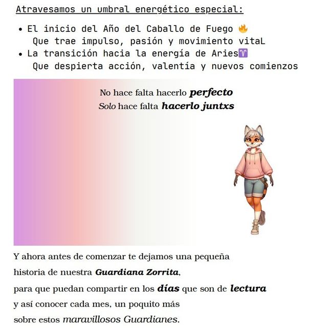 En Marzo nos acompaña la guardiana Zorrita, con energía sensible, intuitiva y observadora.